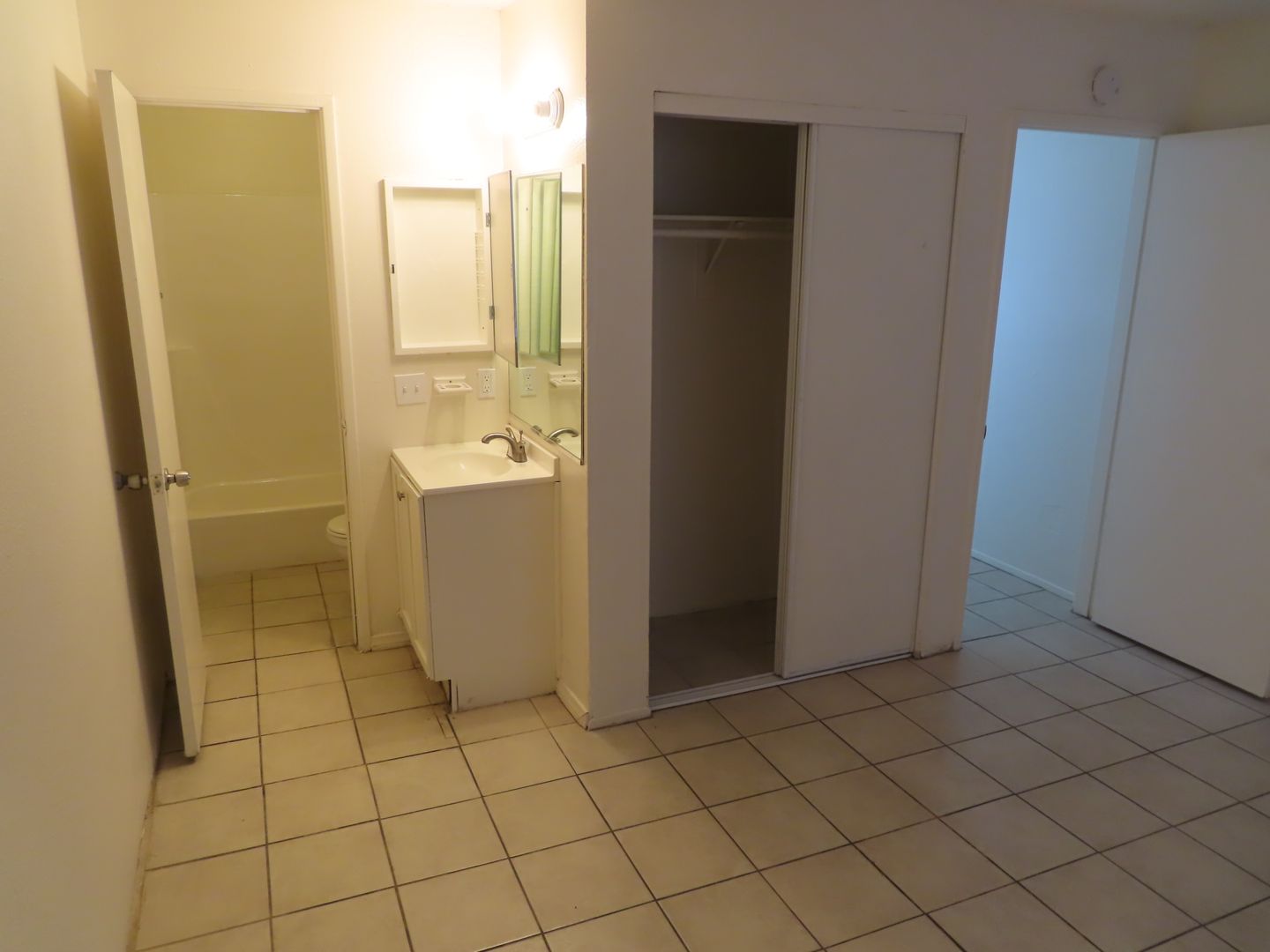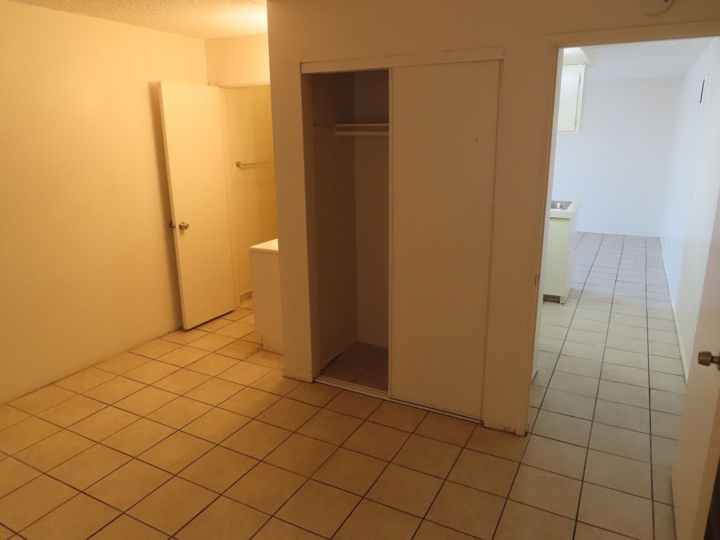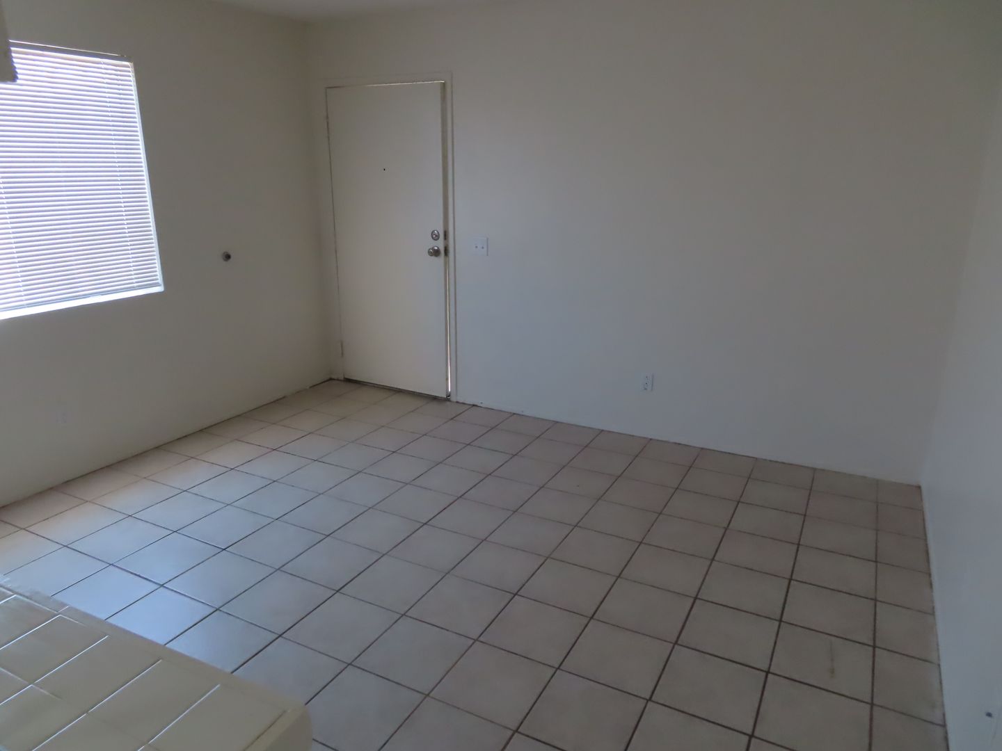 Downstairs apartment with fresh paint. Tile floors throughout are easy to keep clean. Kitchen appliances include a stove and fridge.