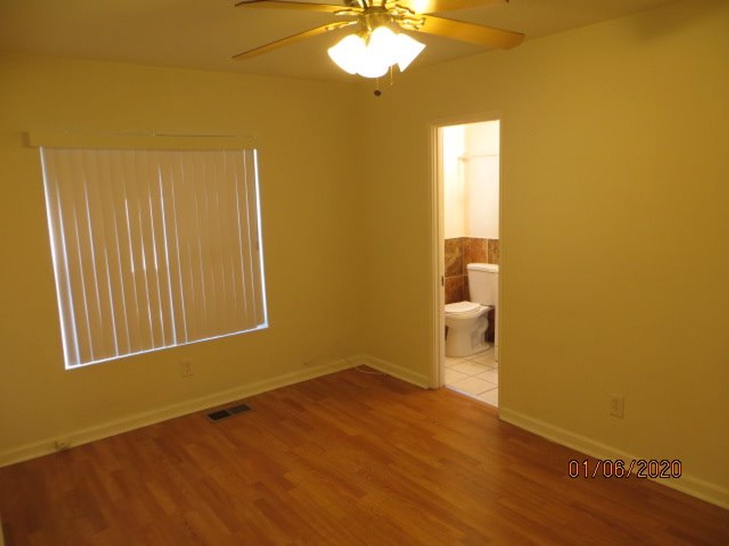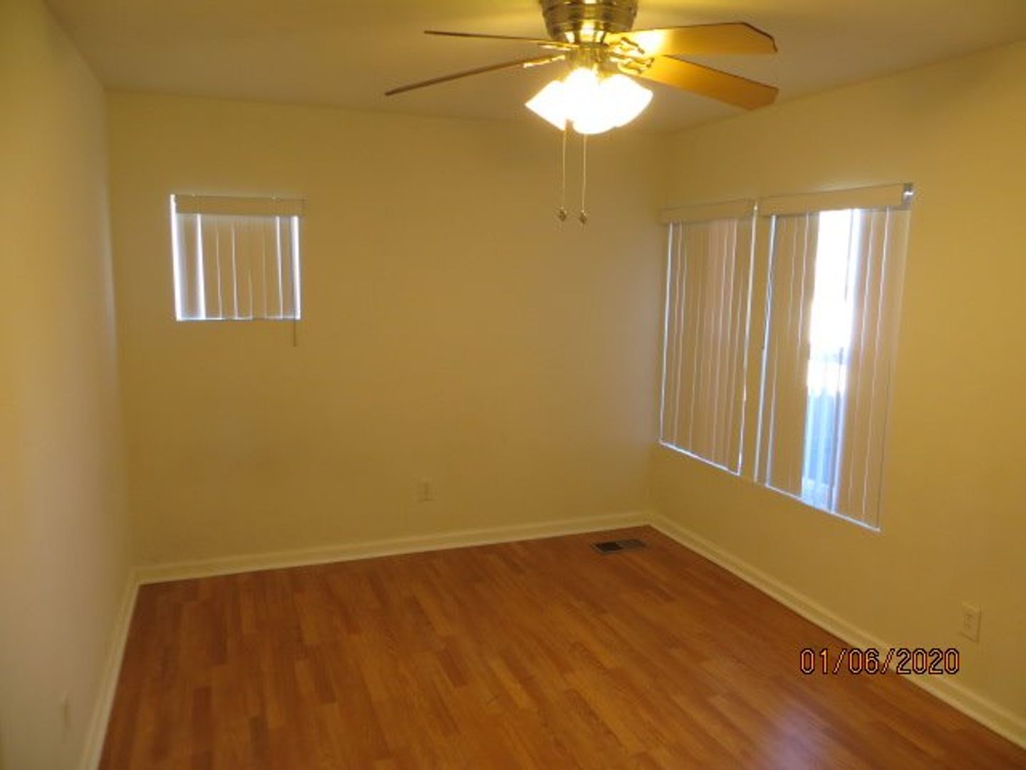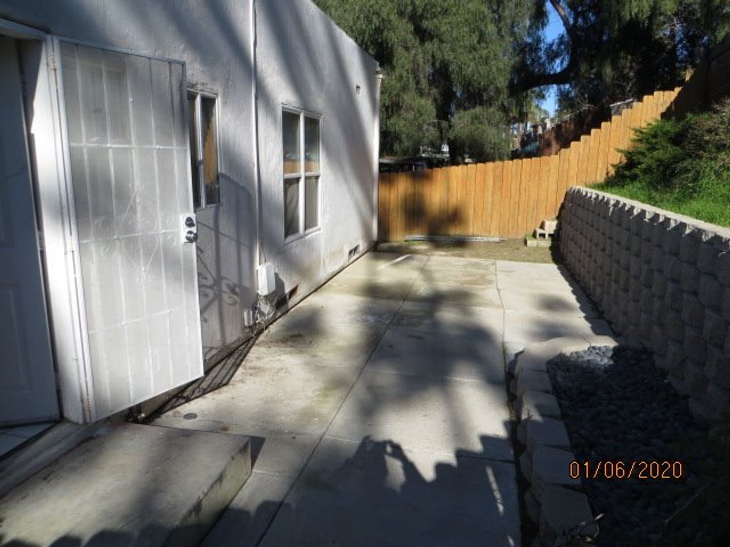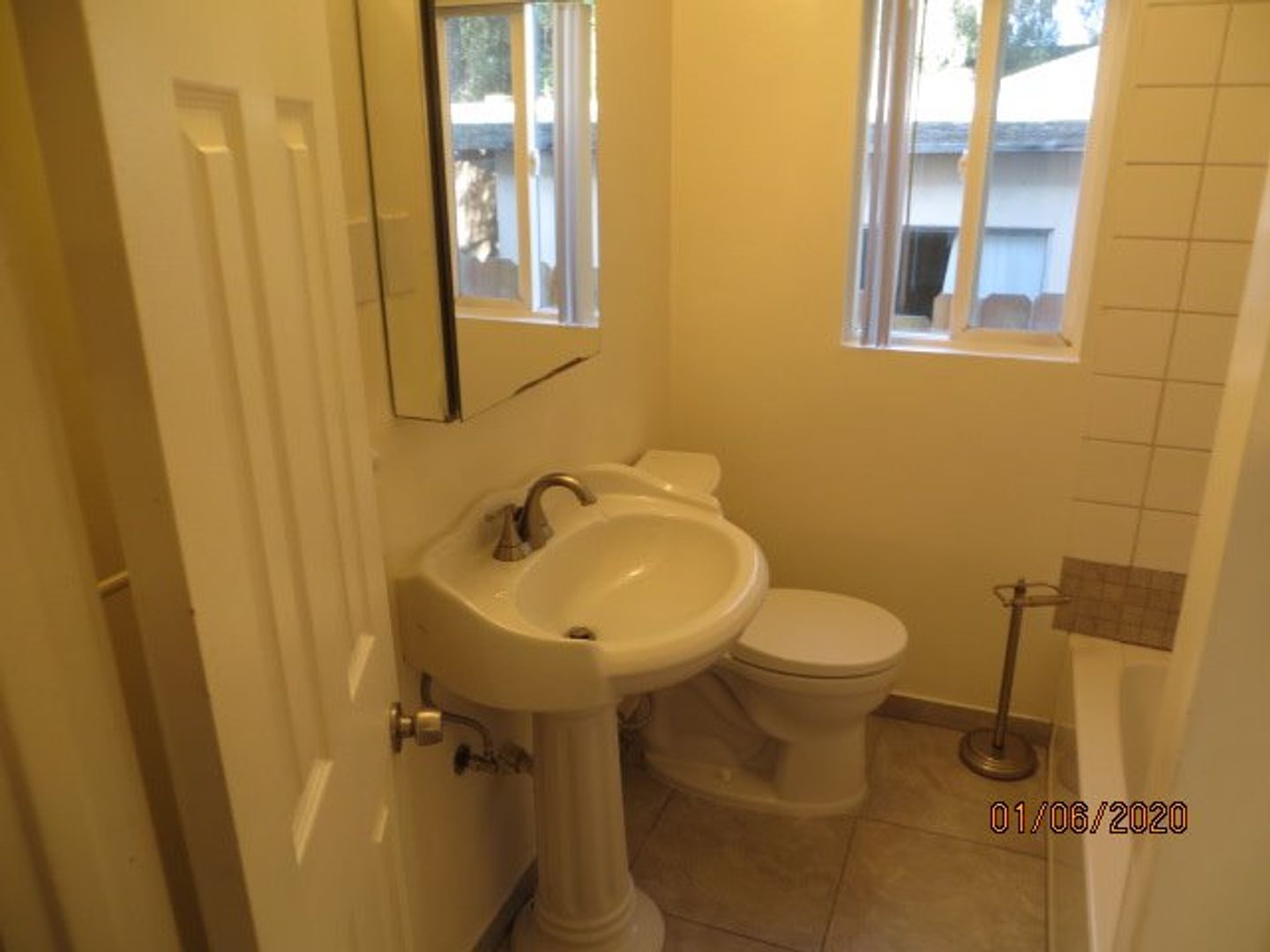 This 3-bedroom 2-bathroom house sits at the back of a quiet lot, shared with a duplex apartment building.