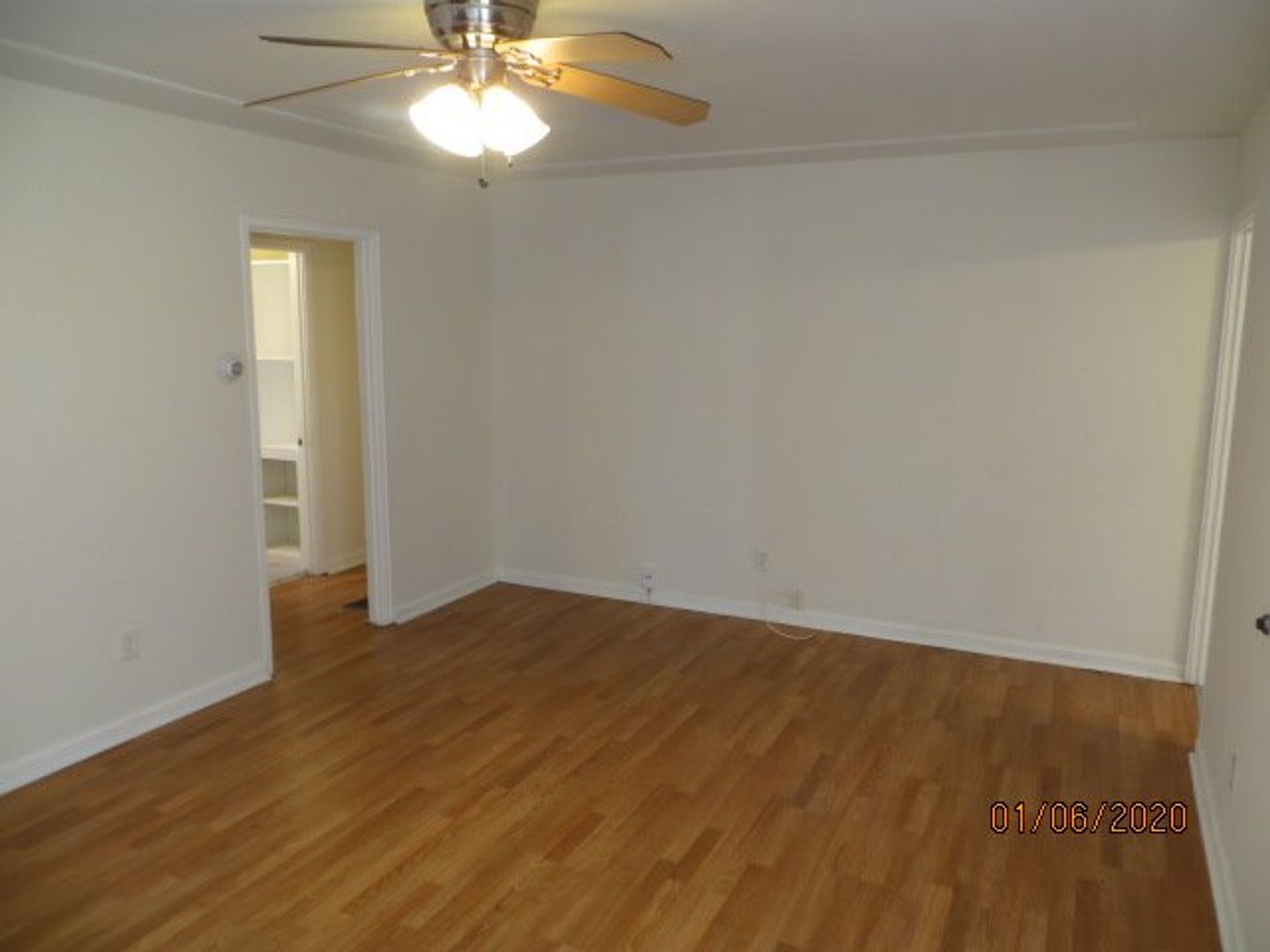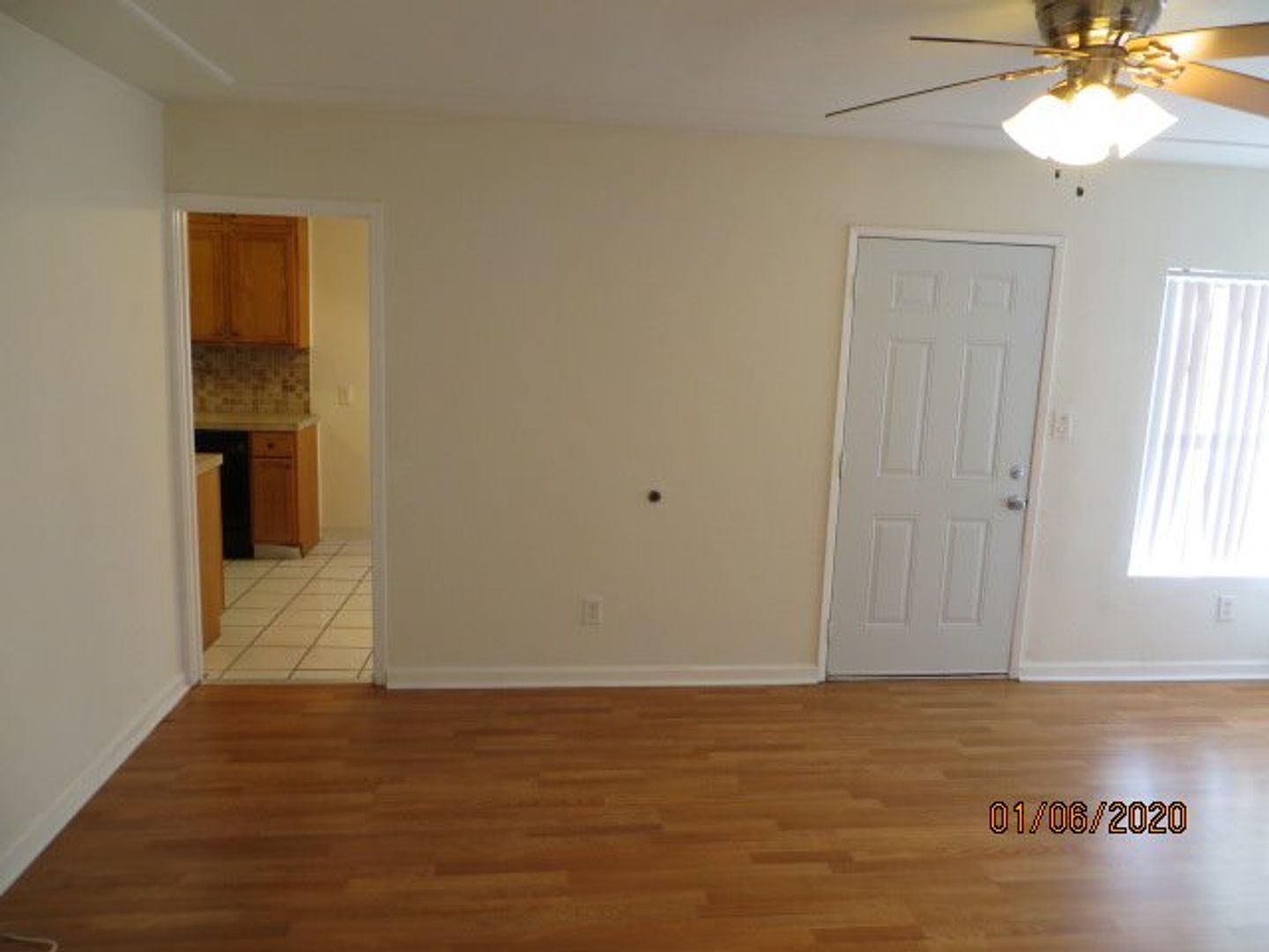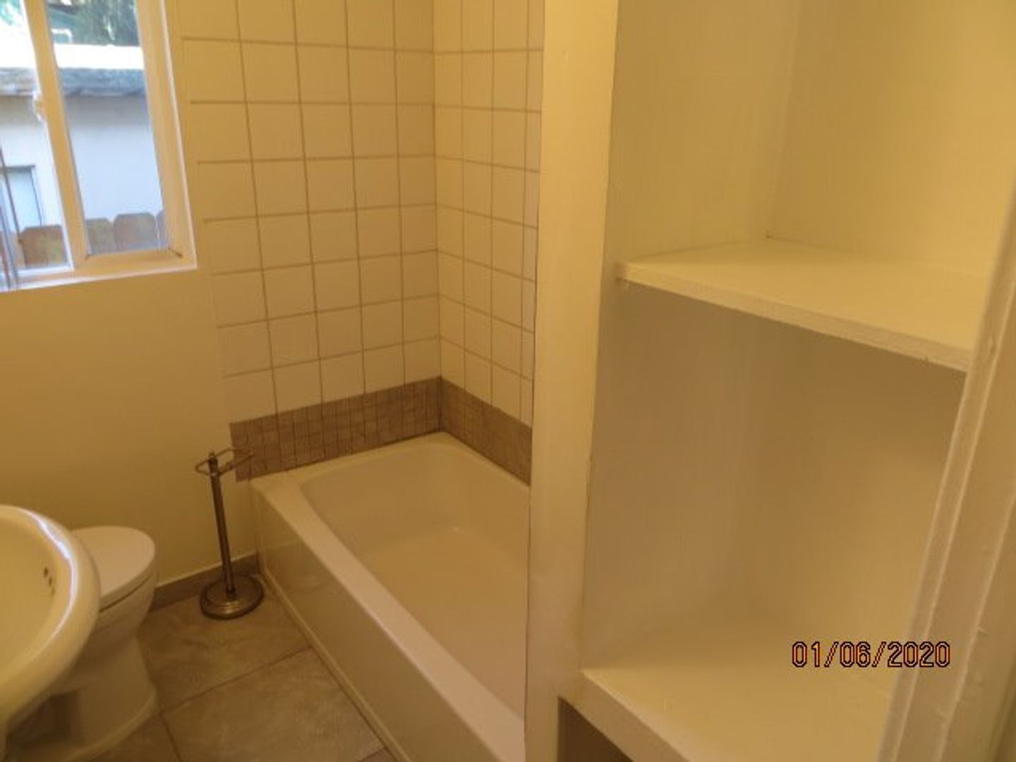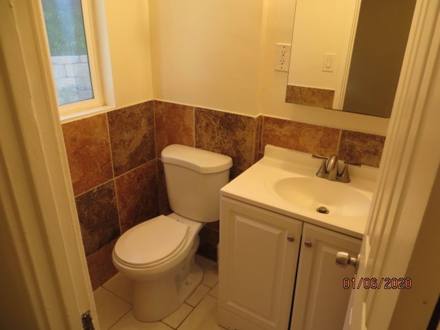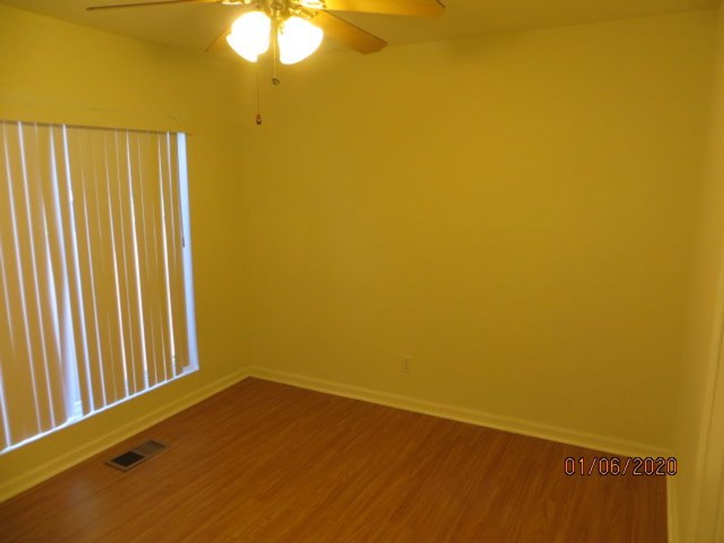 This 3-bedroom 2-bathroom house sits at the back of a quiet lot, shared with a duplex apartment building.