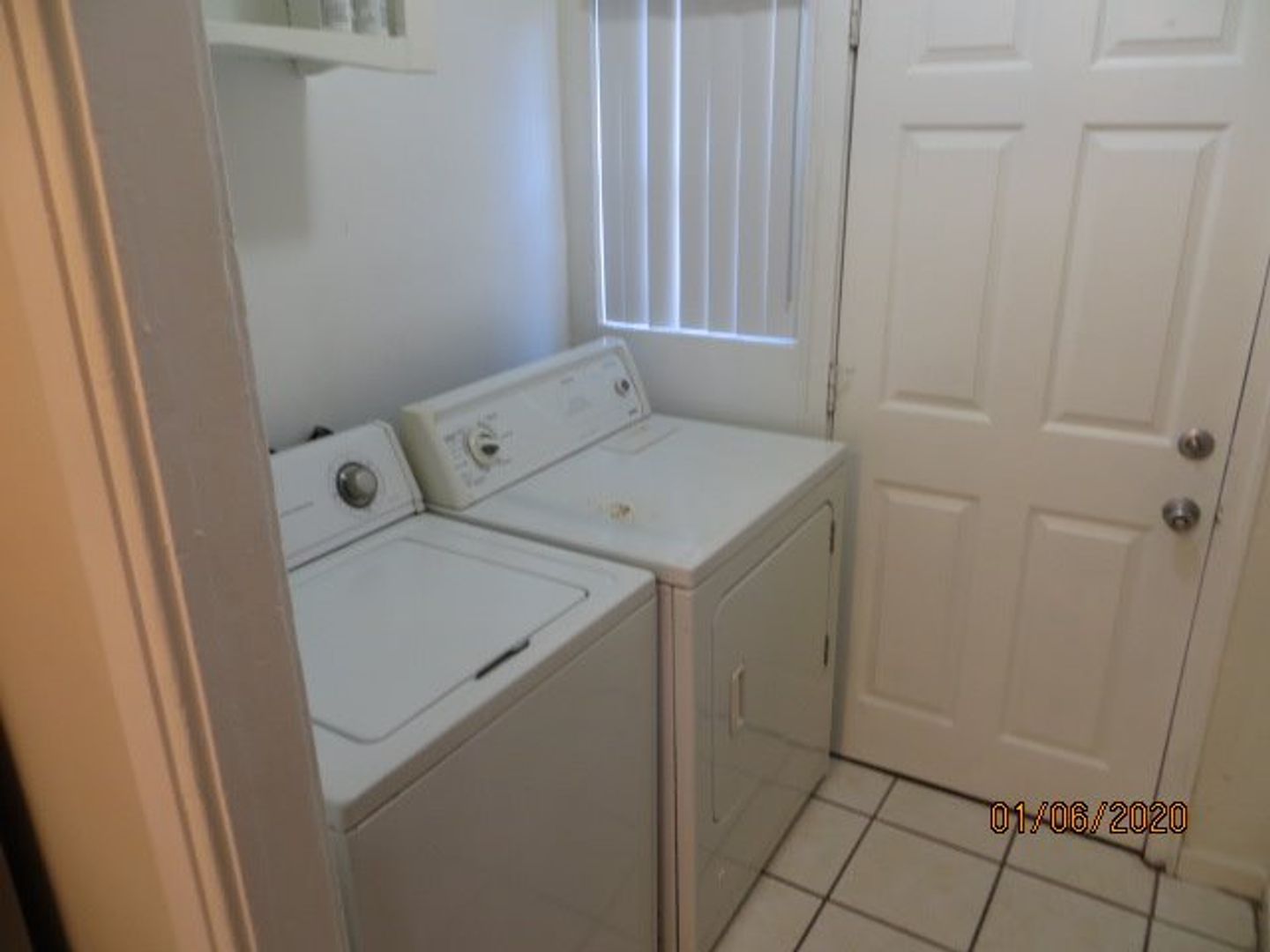 The kitchen features wood cabinets with natural stone tile counters, tiled walls, a large refrigerator with water & ice, gas stove and a dishwasher. There is a dining area off the kitchen with lot's of windows supplying great natural light. On the other side of the kitchen is a laundry room with washer and dryer.