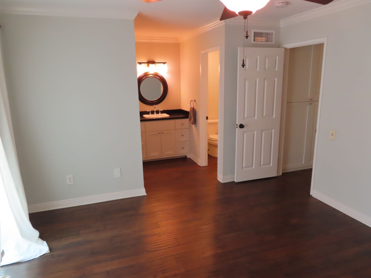 * Master Bedroom with walk-in closet and master bathroom with stylish vanity