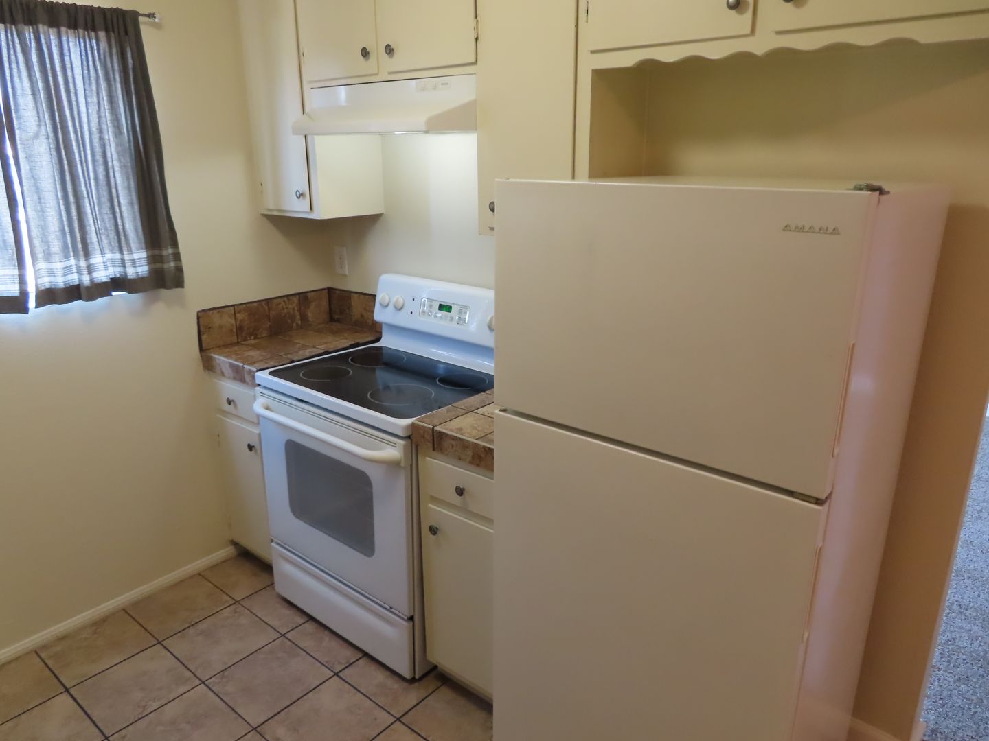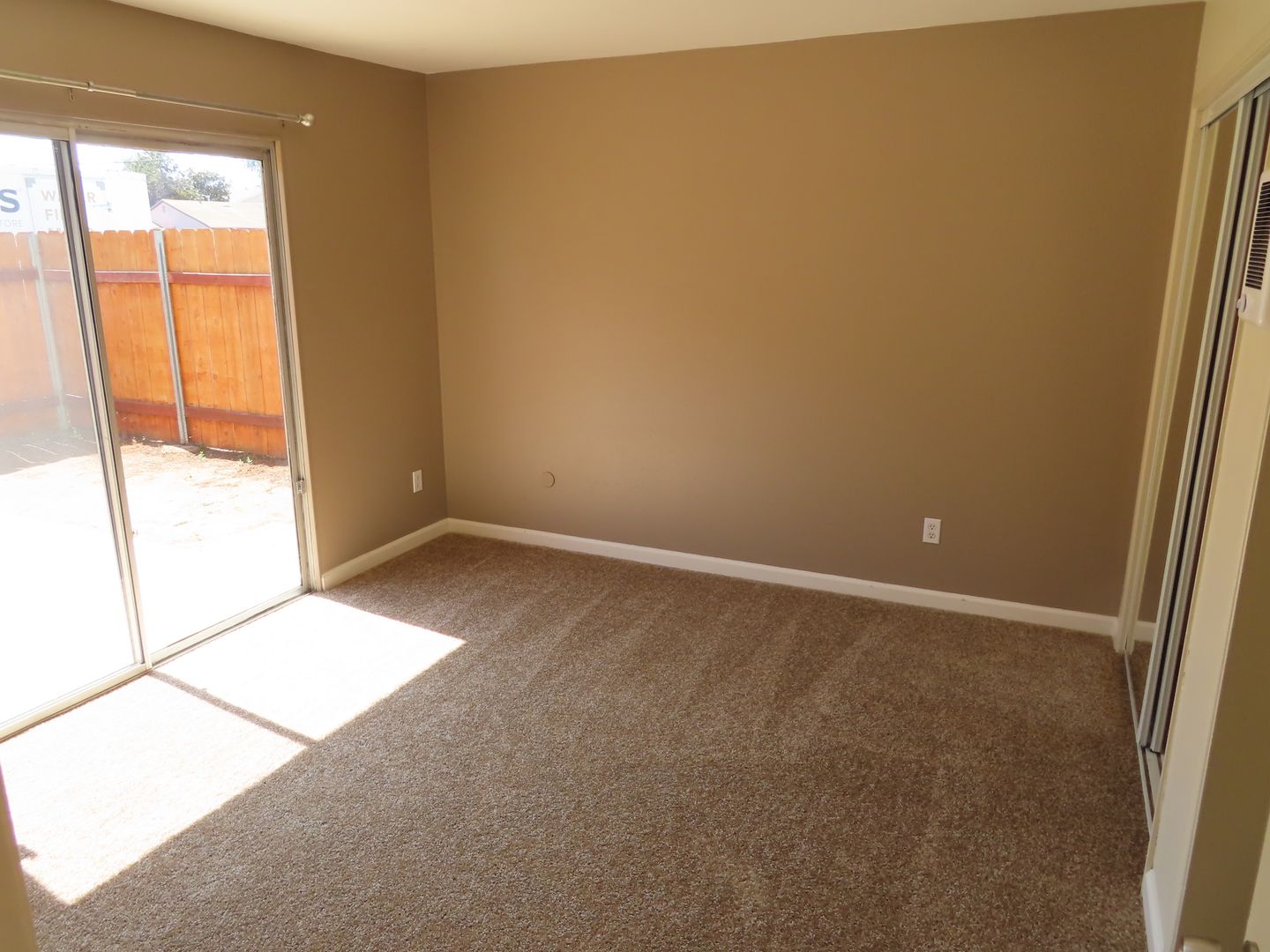 The large living room features new carpet and custom paint colors. The kitchen has a fridge, stove/oven and a small dining area. There are linen storage cabinets in the hallway. The bedroom has a HUGE closet and also new carpet. A slider door from the bedroom takes you to your own fenced back yard area.
