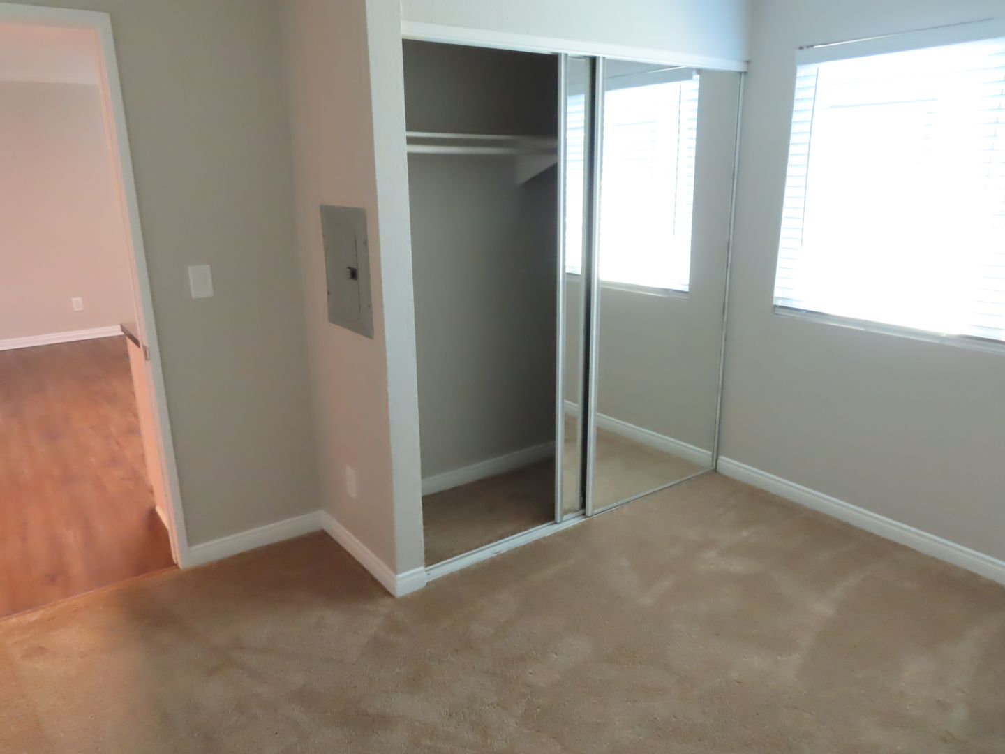 Mirrored closet doors in one of the bedrooms.