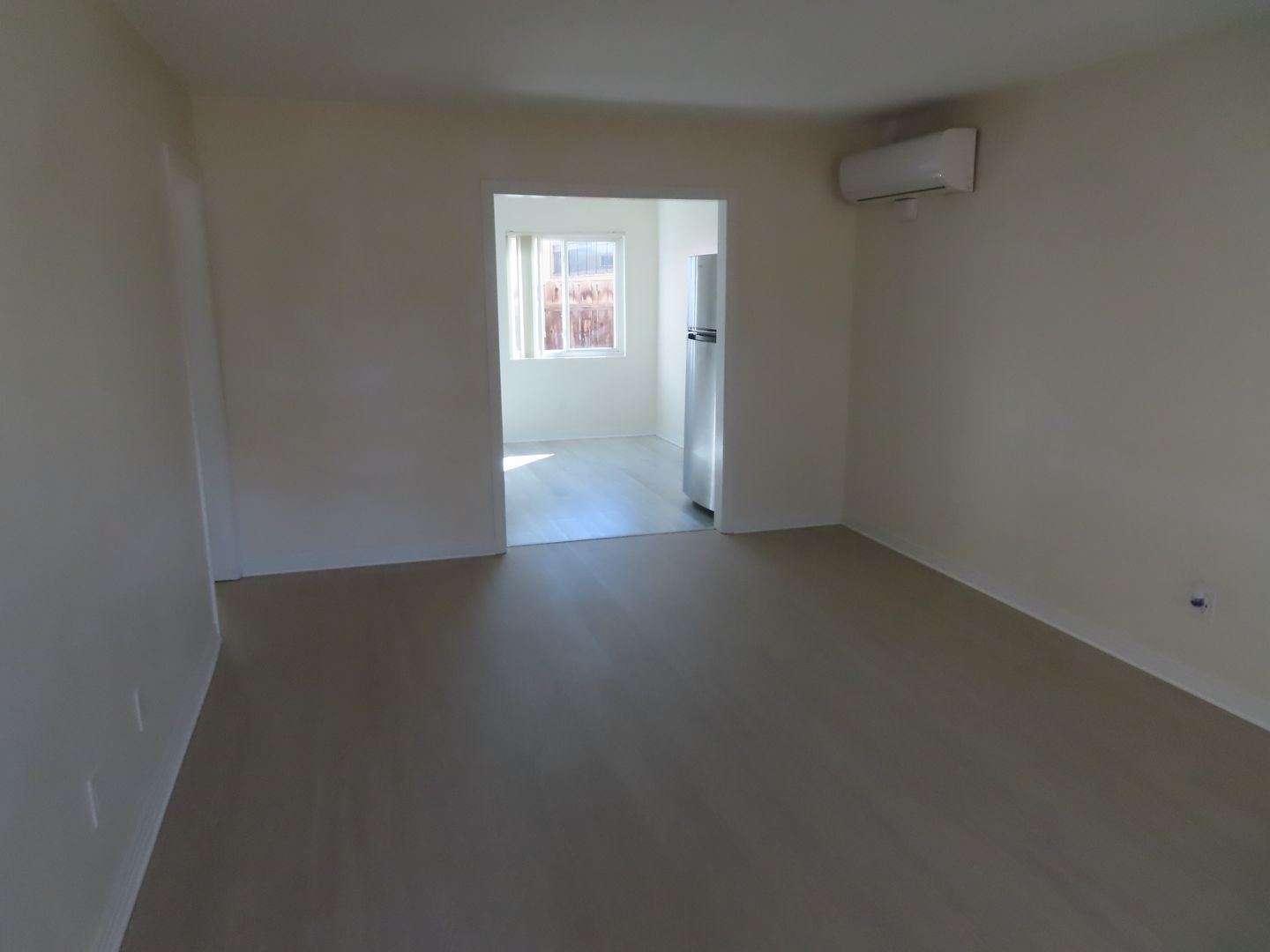 - Plank flooring throughout with tall baseboards.