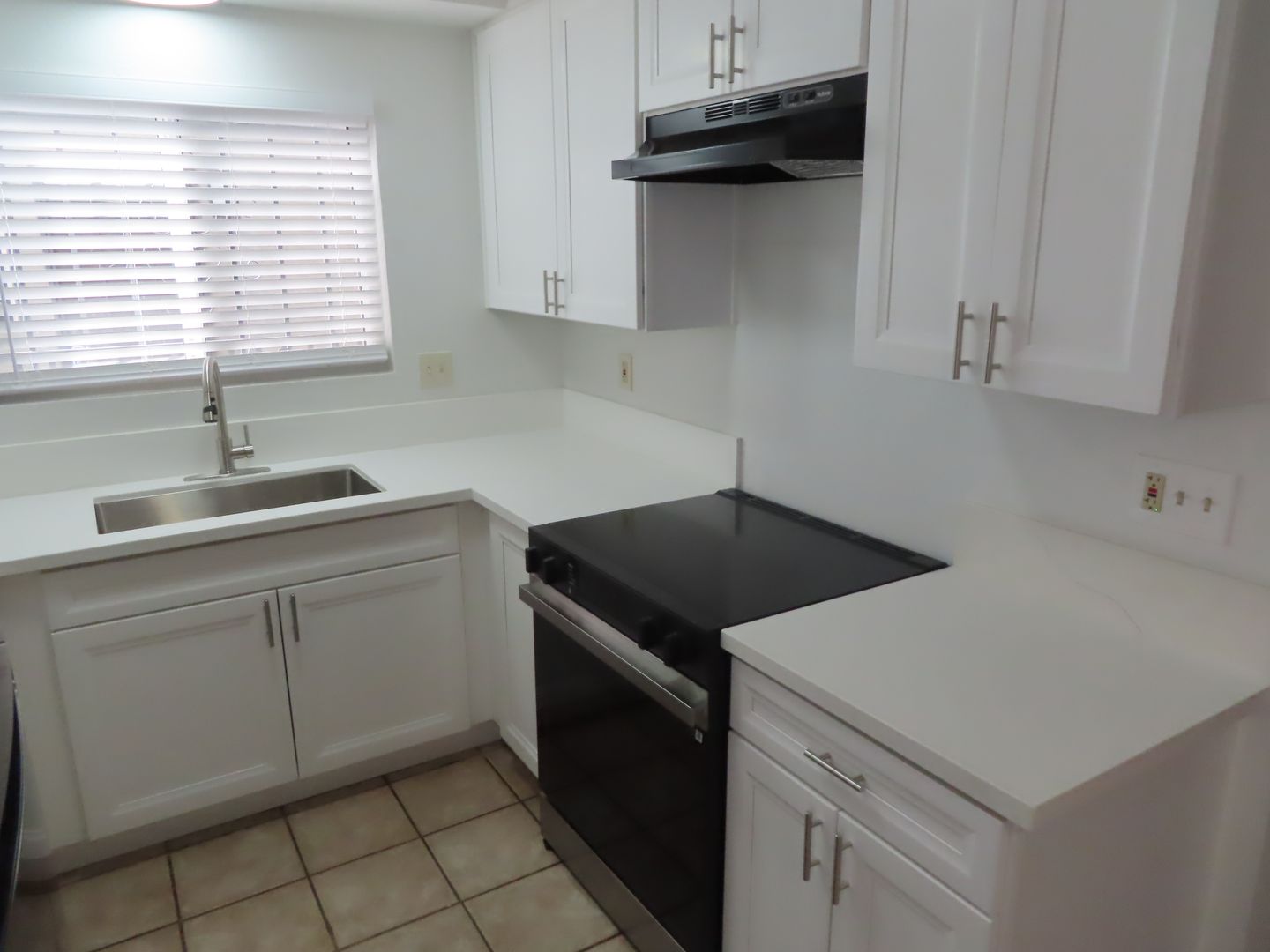 Nicely updated upstairs one-bedroom apartment inside a gated property in San Diego. Kitchen has been completely renovated with new cabinets, quartz countertops appliances (fridge, electric flat-top stove and range hood) as well as a nice faucet. The bathroom has also been renovated. Tile flooring throughout is easy to keep clean! Built-in cabinets in the bedroom closets. Two assigned parking spaces included.